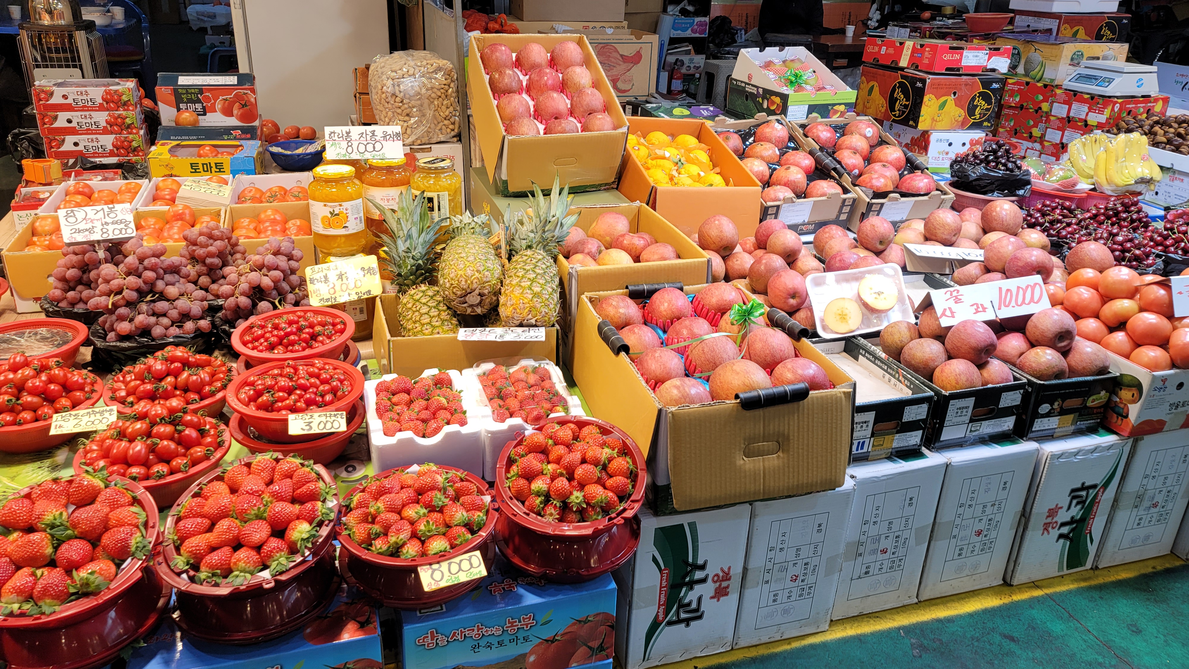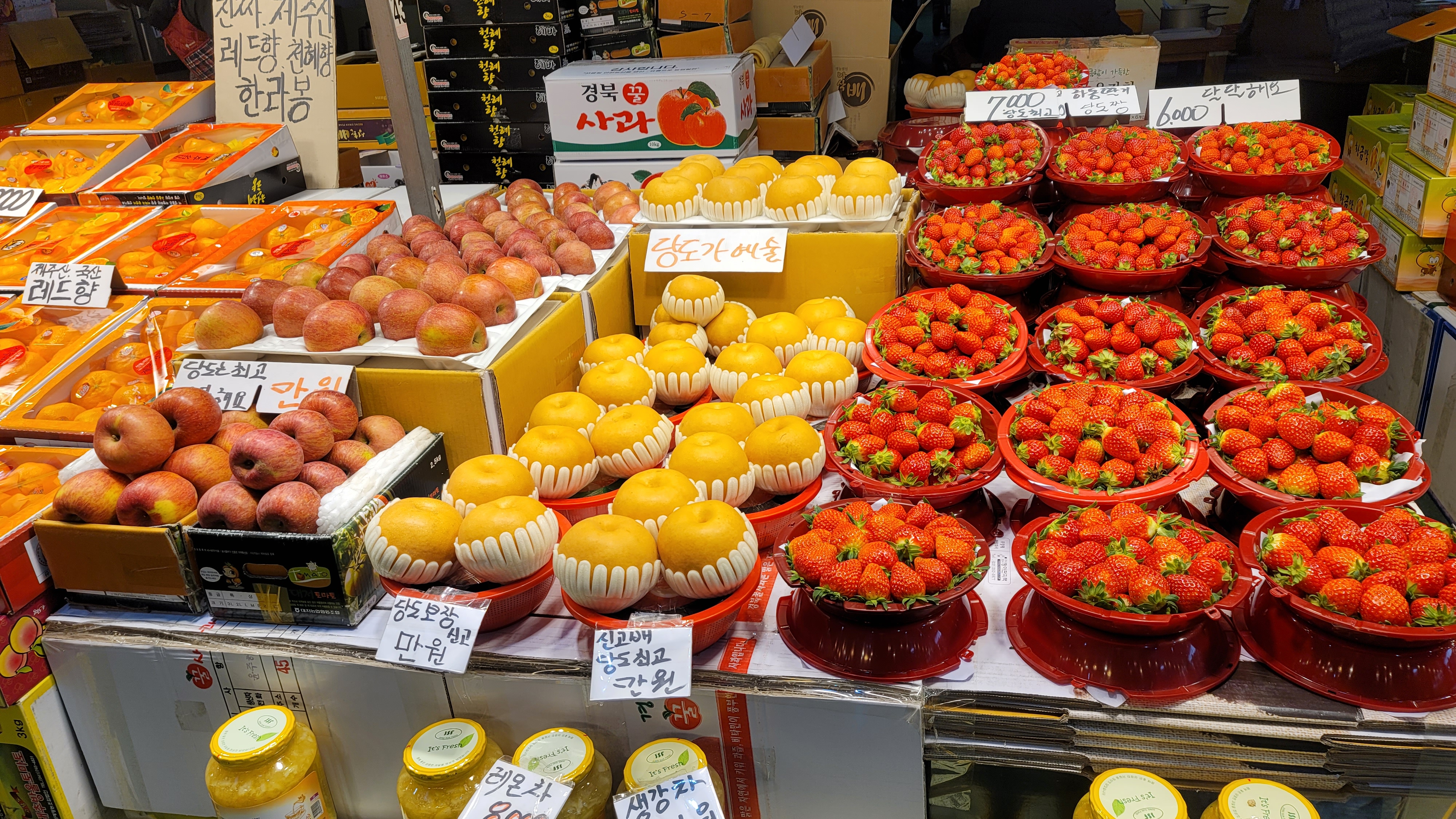 딸기와 함께 싱싱해 보이는 배도 많이 있네요. 겨울철 달달한 배도 건강에 좋습니다.