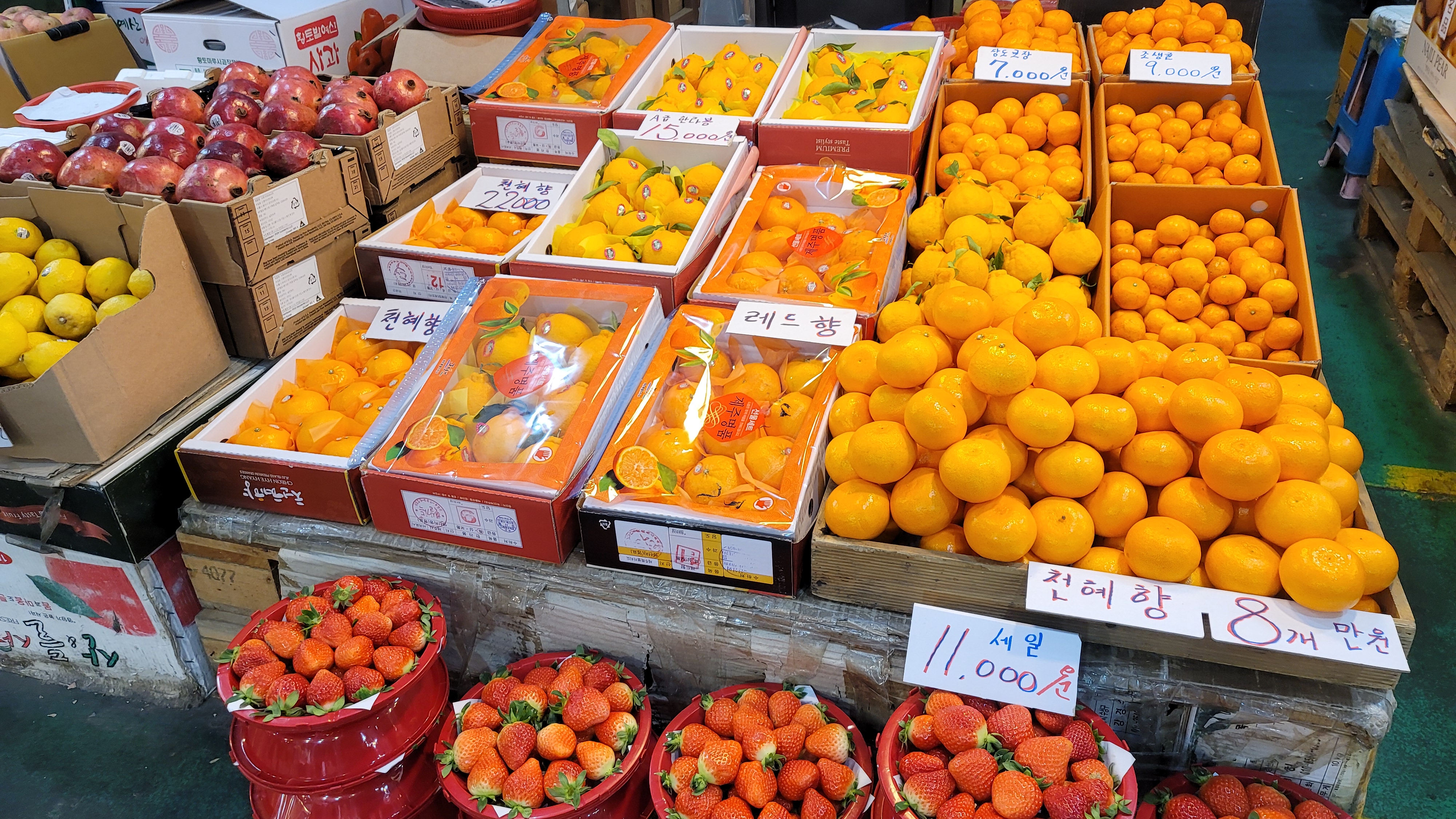 겨울하면 생각나는 대표과일! 천혜향, 한라봉 등이 보입니다. 가을이 생각나는 단감도 있네요~~~