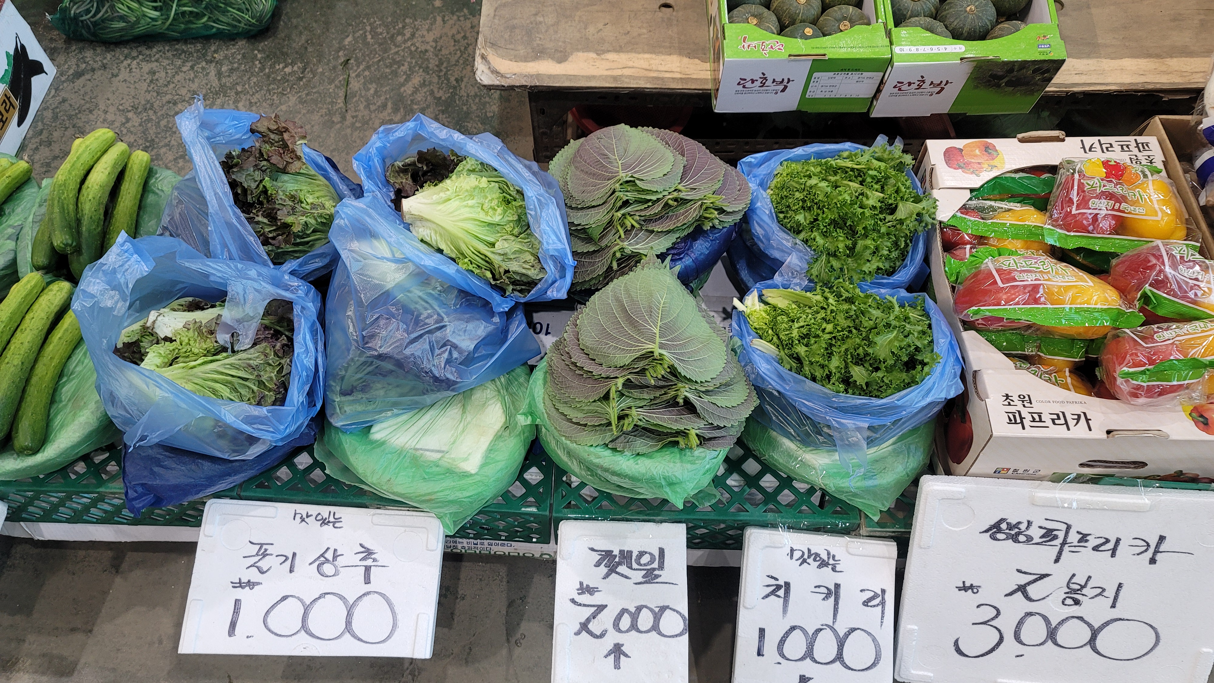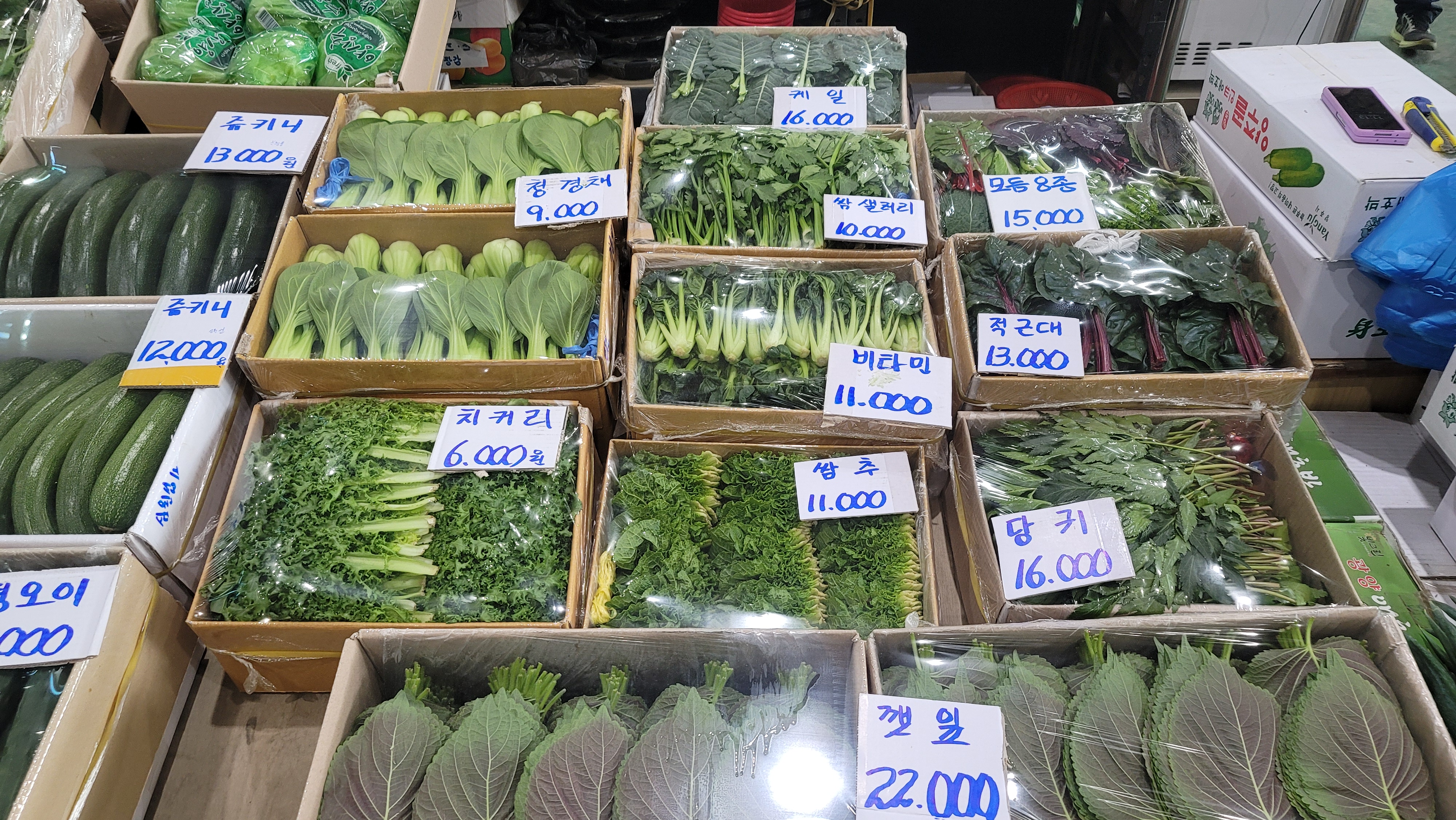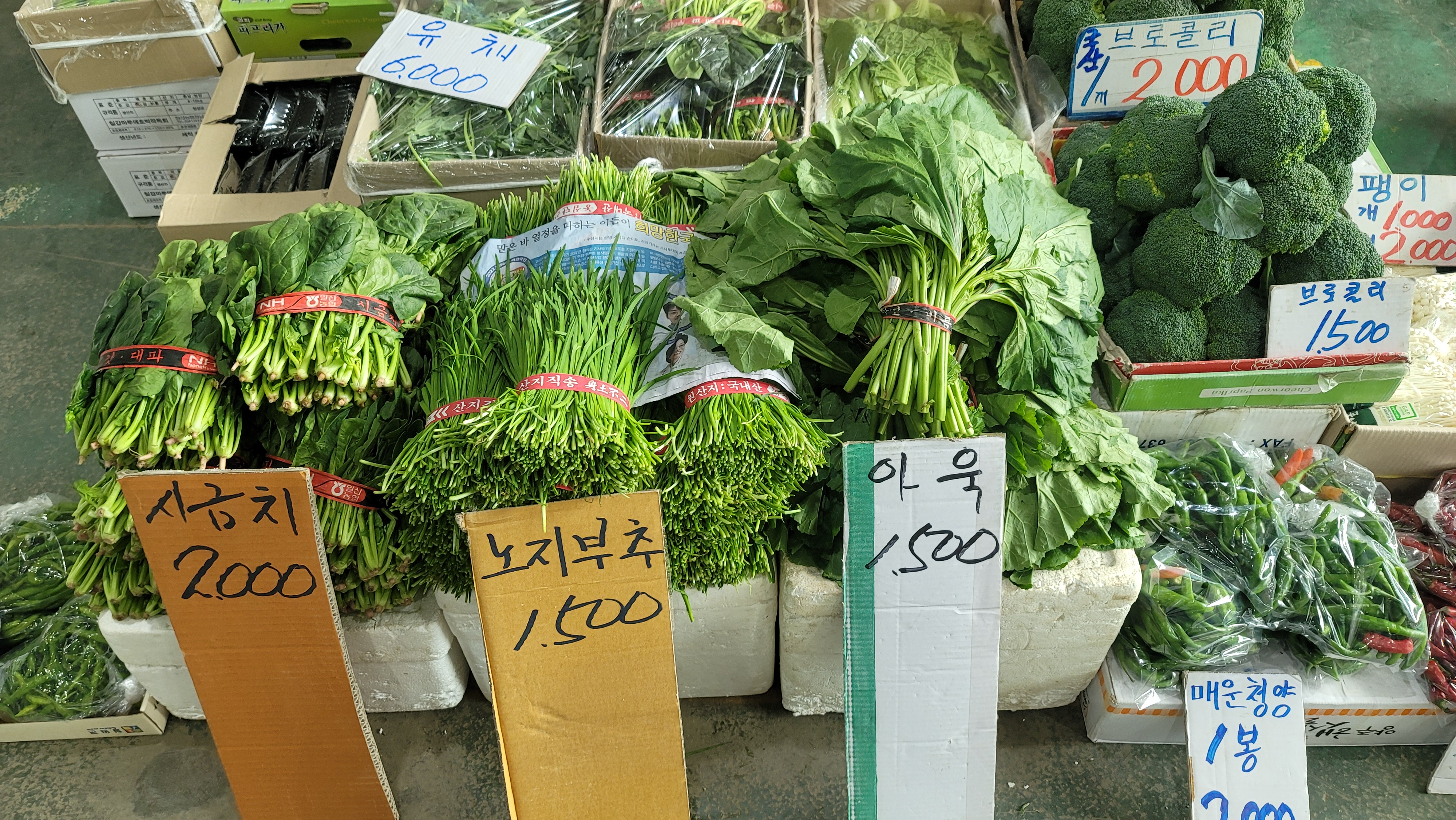 그밖에 시금치, 부추, 아욱도 있네요. 아욱이 요즘 제일 맛있다고 해요.