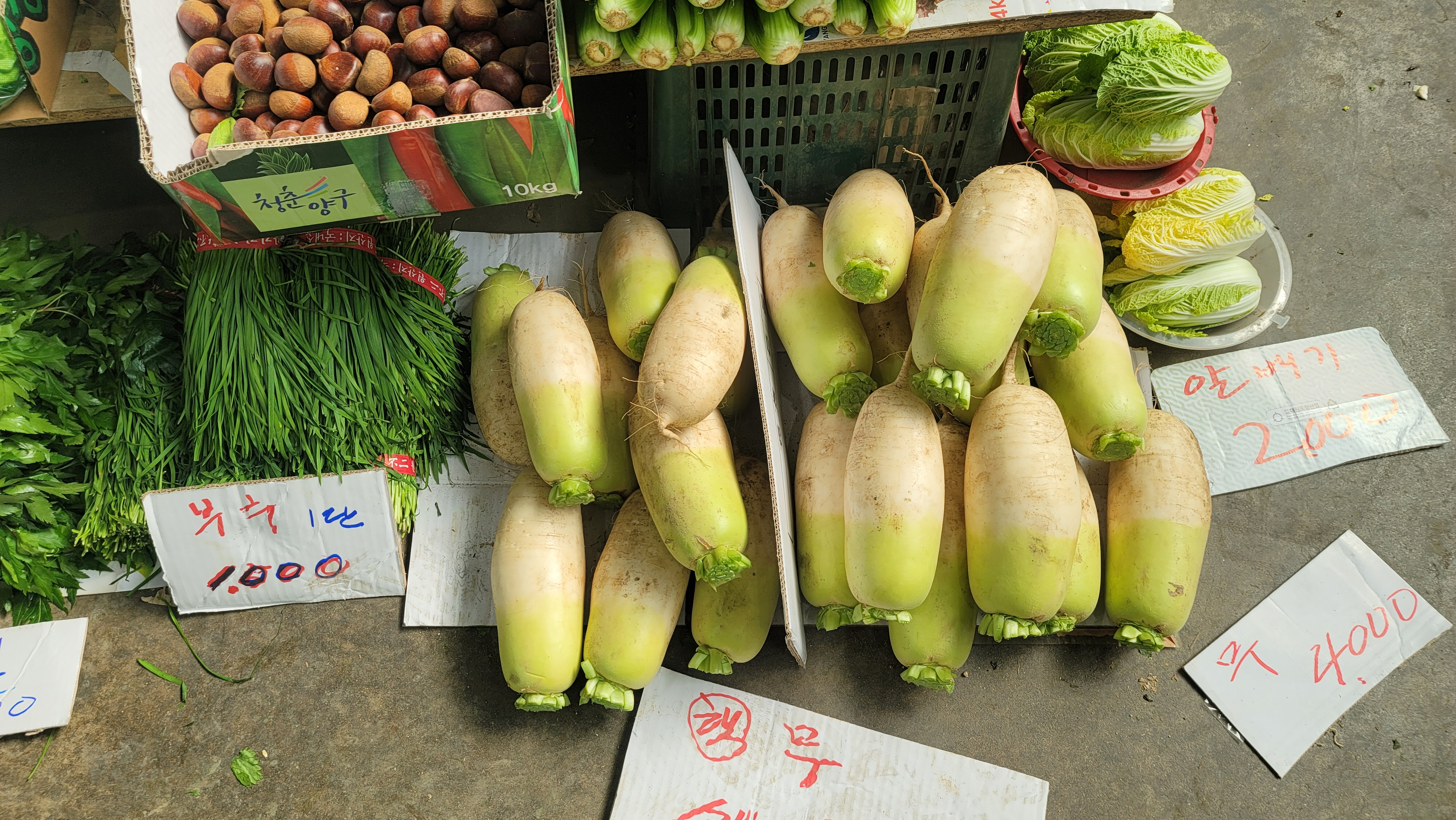 요즘 주부님들이 많이 찾으시는 무 입니다. 아직은 맛이 완전히 들때가 아닌데 벌써 많이 나와있습니다. 무는 겨울에 먹어야 제맛이죠?