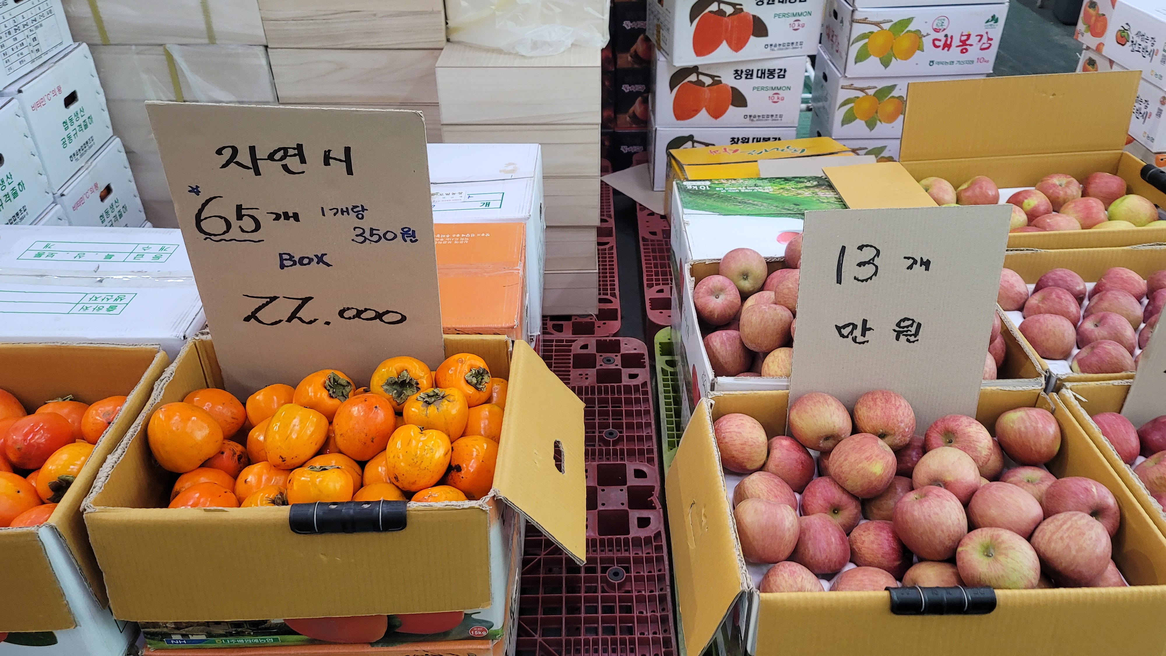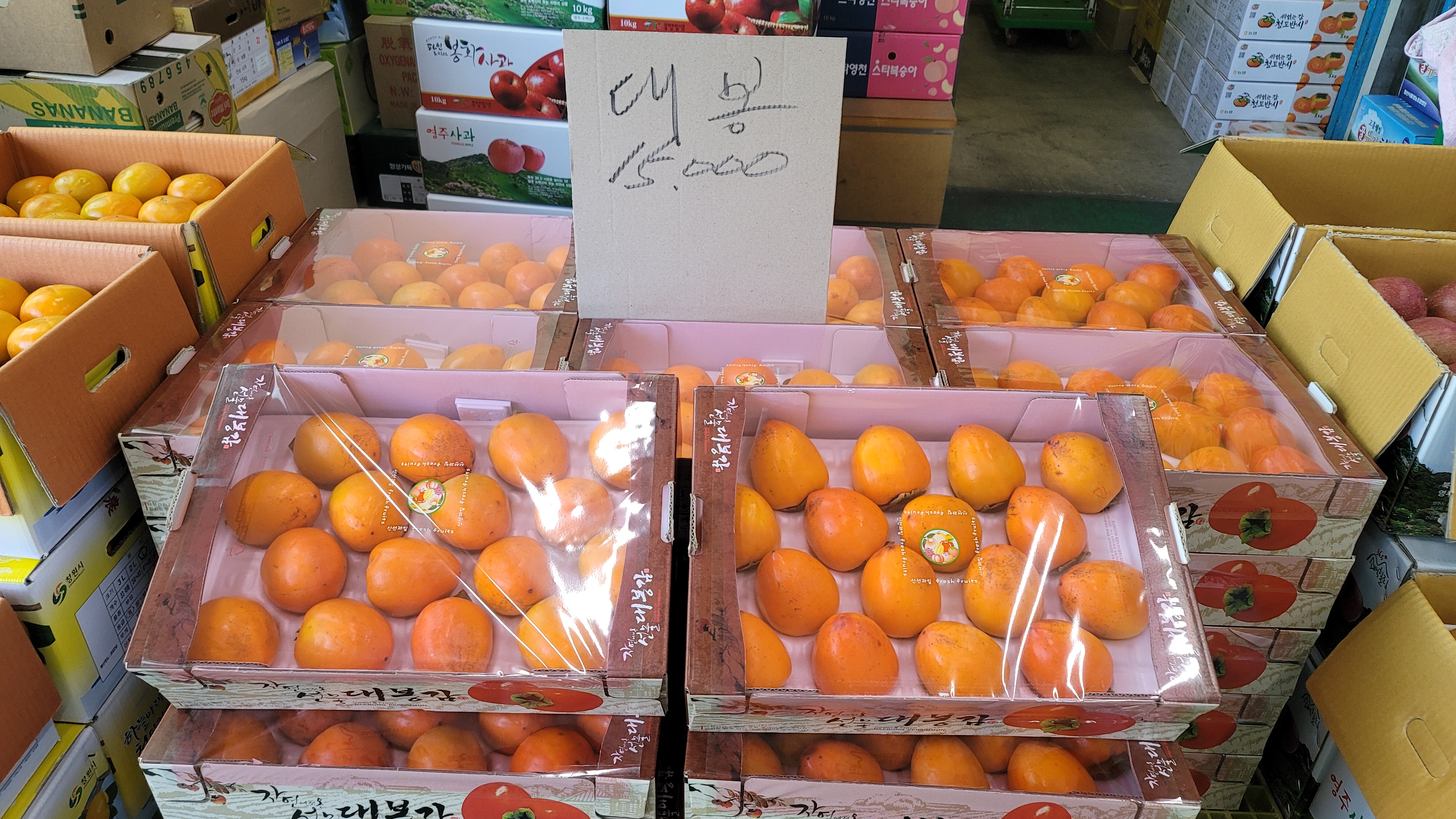 단감, 홍시감, 연시,반시 등 가을이니만큼 제철인 감 종류가 잔뜩 나와있었구요~ (홍시감은 반을 잘랐을때 투명한과육을 제외한 정가운데 불투명한 밝은색 심지부분을 떼고 드시기 바랍니다~ 그 부분이 타닌성분으로 인한 변비를 유발할 수 있다고 해요..)