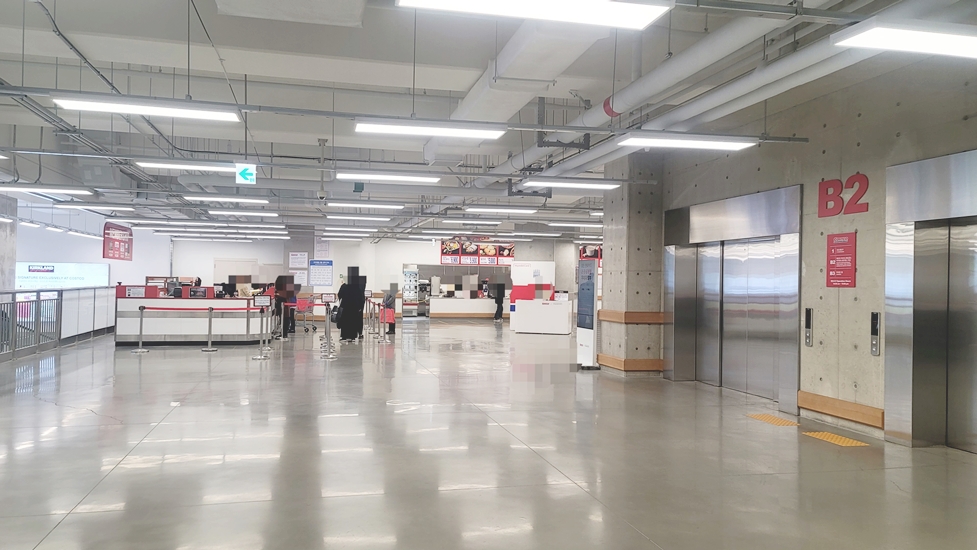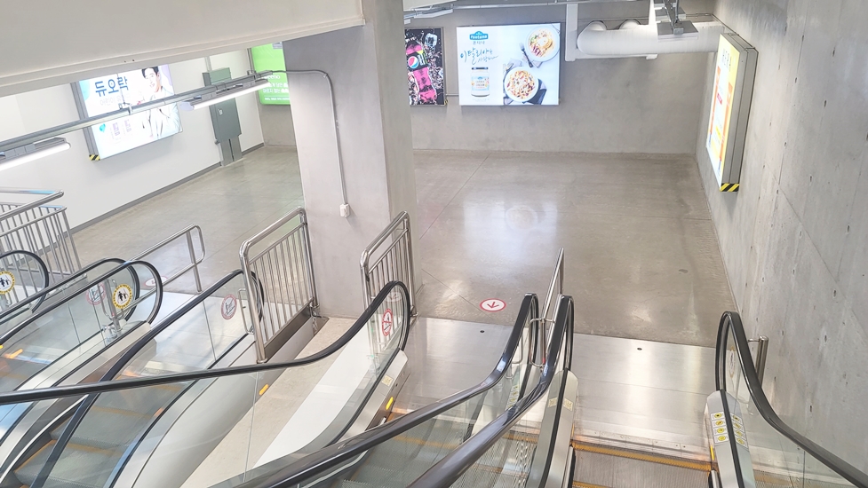 입구에서 들어가면 에스컬레이터를 타고 두개 층 아래로 내려가게 되는 구조입니다.
