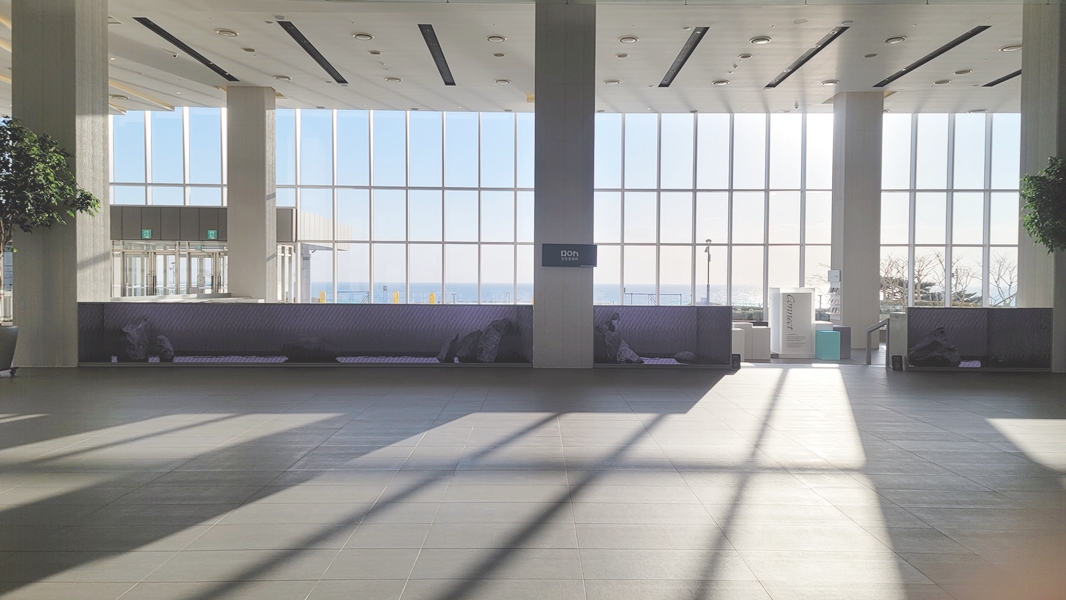 식당에서 나가면 보여지는 로비 입니다. 저 보여지는 파도 그림은 움직이는 스크린 입니다. 스크린 안에 파도가 출렁이네요