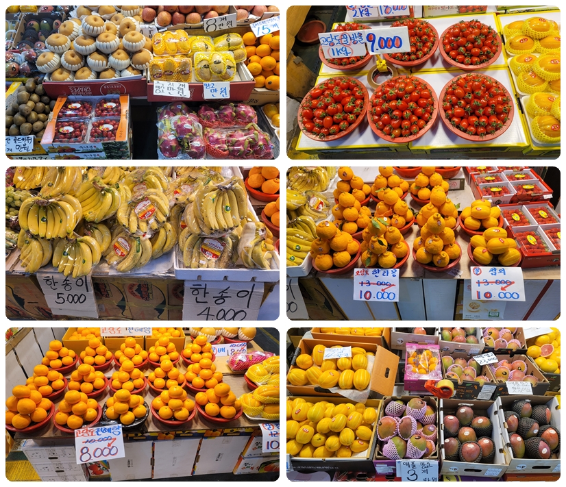 신선한 계절과일들이 많이 눈에 띄었어요! 여름과일인 참외가 벌써 보이기 시작하네요