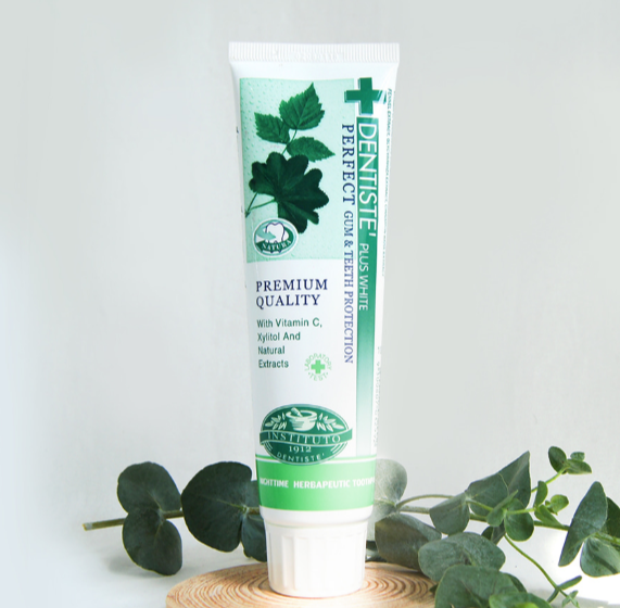 다음으로 덴티스테 입니다. 제가 사용중인 제품은 '플러스 화이트' 입니다. 태국에 본사를 둔 이 제품의 이름 '덴티스테'는 프랑스어로 치과의사 라는 뜻 이라고 해요. 이 제품은 지난번 치약파동때 특히 집중적으로 문제가 된 CMIT/MIT를 비롯해 파라벤6종과 그 외 13종까지 무려 21개 유해성분이 무첨가 임을 알리고 있는데요. 보존제로 사용한 벤조산 나트륨이나 타르색소 청색1호인 인공색소가 첨가된 부분은 아쉬움이 큰 것 같아요. 동물 실험에 의하면 벤조산나트륨은 소비되는 양에 직접 비례하여 신체 염증경로를 활성화 시킬 수 있다는걸 본적이 있어요. 사람쓰는 치약에 인체에 영향을 미칠만큼의 고농도를 사용하진 않았겠지 하는 생각을 하면서도 치약파동이 다시한번 생각나는 아찔한 순간이죠. 그런데 국내에서는 치약에 함유하는 보존제 중 하나로 벤조산나트륨을 규정하고 있다고 해요. 그래서 팔리고 있겠죠 아마도. 양치 후 입안을 물로 행궈내는 제품이기에 괜찮다고 판단한것이 아닐까 싶습니다.