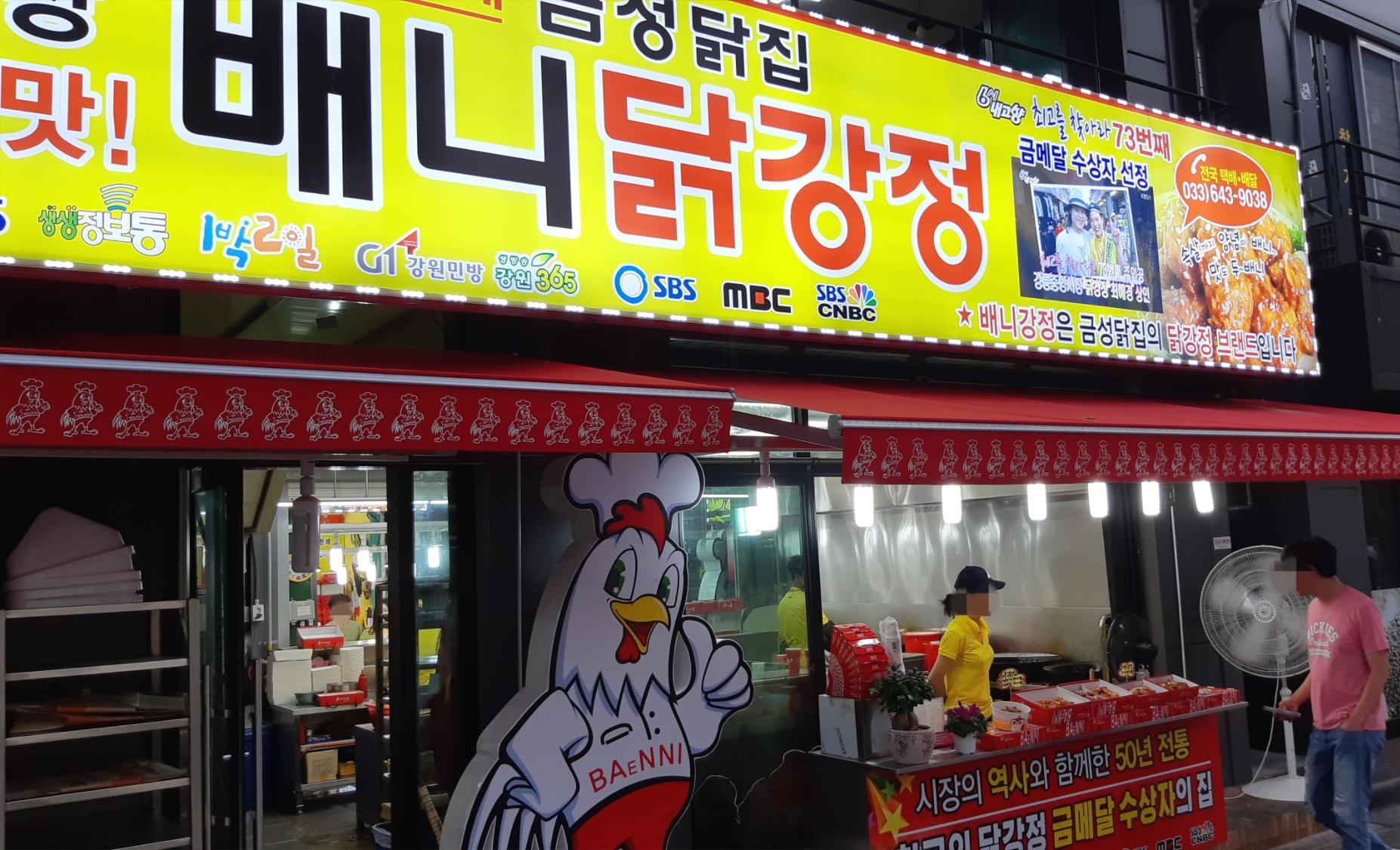 시장에 가면 꼭 먹어야하는 음식, 역시 닭강정 이죠! (응 니기준 이야ㅋㅋ 라고 하시는 목소리가 들리는것 같네요ㅎㅎ) 저의 인생역사에 미각을 자극하는 최고의 식품 중 빼놓을 수 없는것이 있다면 그건바로 치킨 인데요, 그렇기 때문에 제 기준에 맛이 없는치킨 이라는 것은 있을 수 없는 일 인것 같습니다. 시장 내 에는 많은 닭강정 가게가 있었지만 저의 치킨미각에 있어서 맛없는 치킨이란 없기때문에 치킨이 보이는곳 이라면 무조건 들어갑니다. 그렇게 선택한 곳.