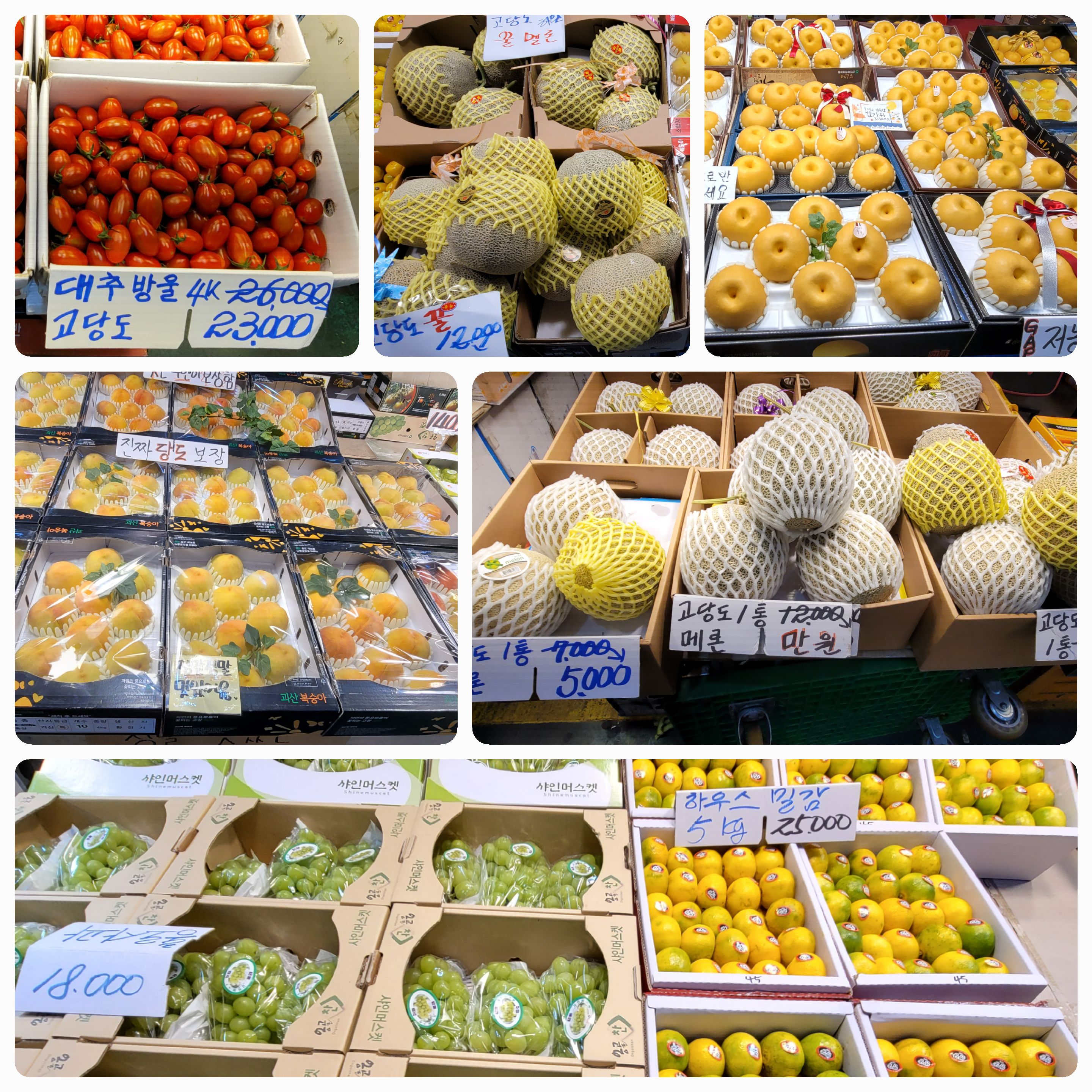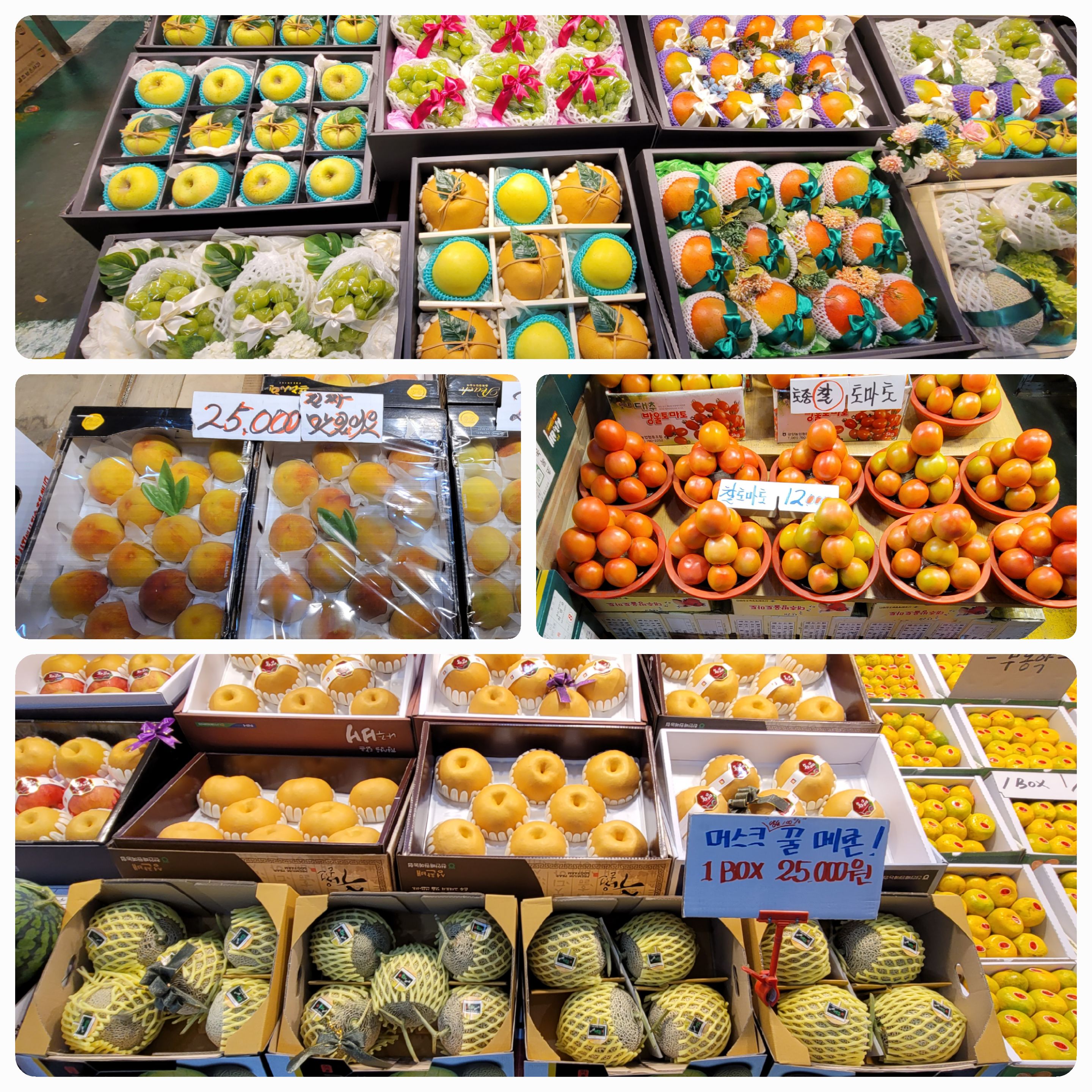 메론, 배, 복숭아 등등 추석을 맞이하여 인기상품으로 자리를 차지하고 있는것이 보입니다. 보기만 해도 달콤합니다!