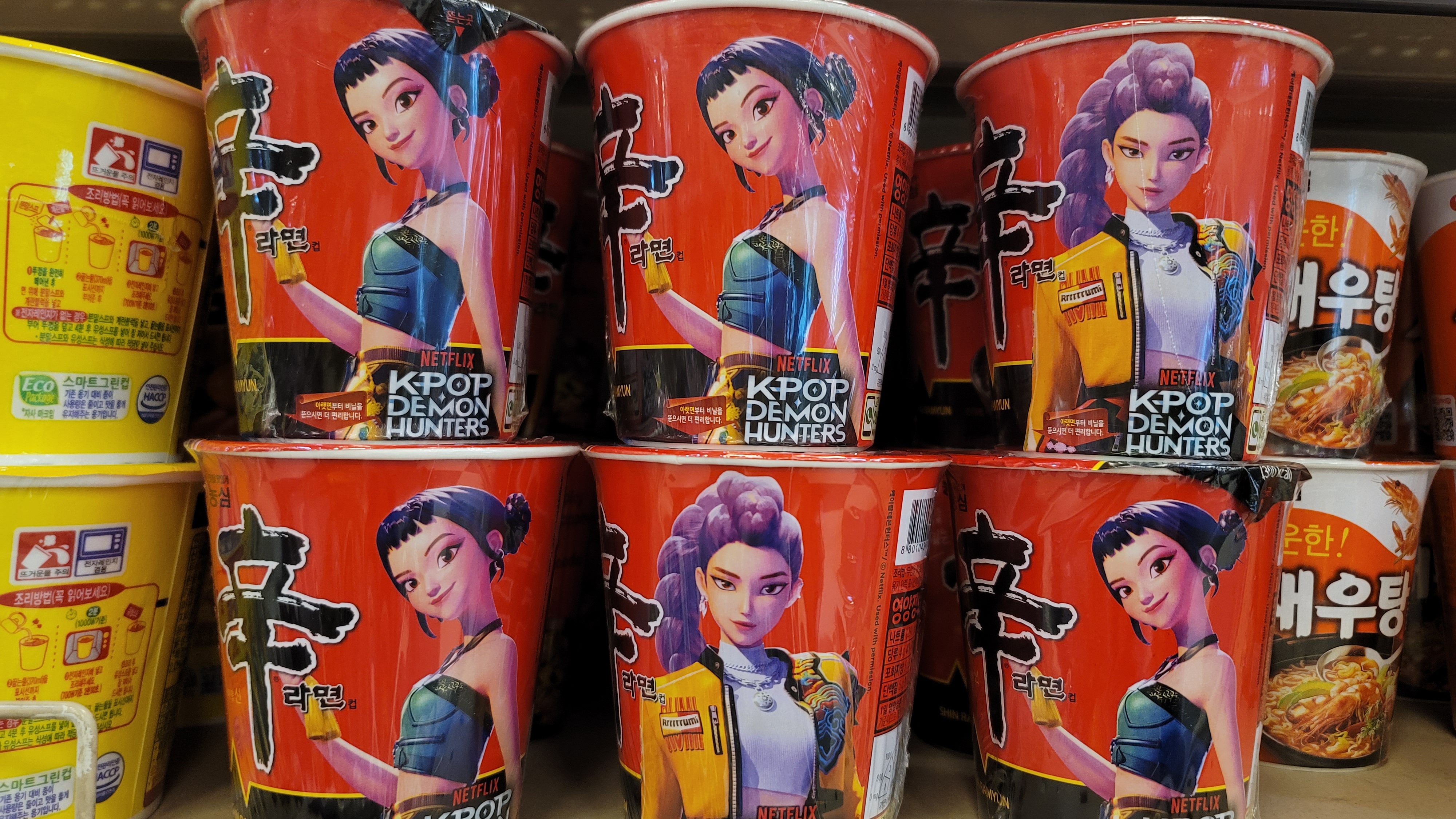그 중 케데헌의 극중 소재 중 하나로 나온 K라면!! 그 라면은 과연 우리나라 인기라면 중 어느것을 표현한것이냐는 말이 많았는데 극중 내용과 상관없이 현실에선 농심과 손을 잡았군요!!