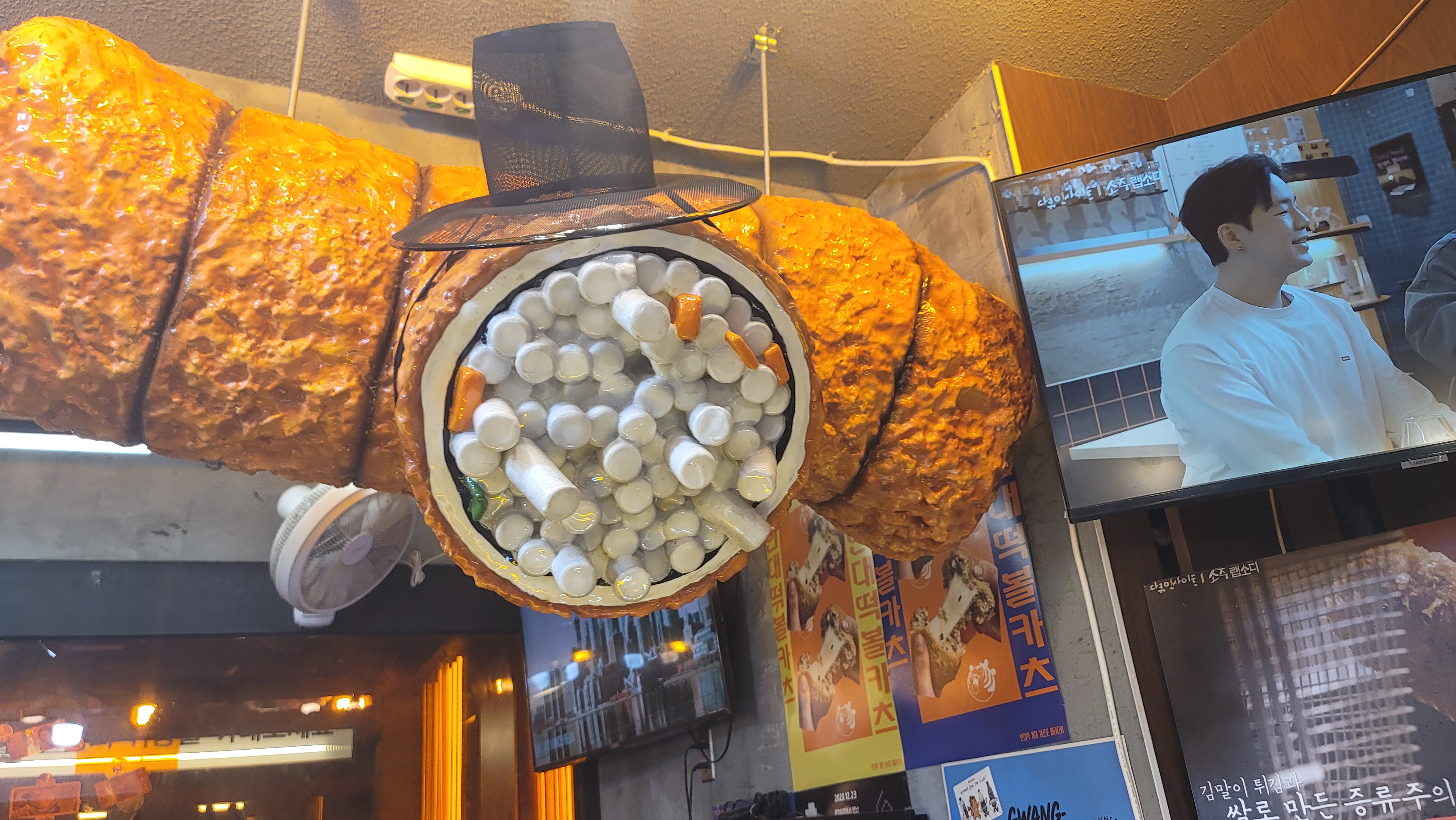 모형의 생김새로만 봐서는 무엇에쓰는 물건인고?할법한ㅋㅋ 과도한 불빛때문에 먹음직스럽지는 않아보였지만, 일단 먹으면 반할듯한? 한국인의 소울푸드 김말이 ㅋㅋ 김말이 떡볶이에 묻혀먹으면 딱 맛있는데요..하...배고파
