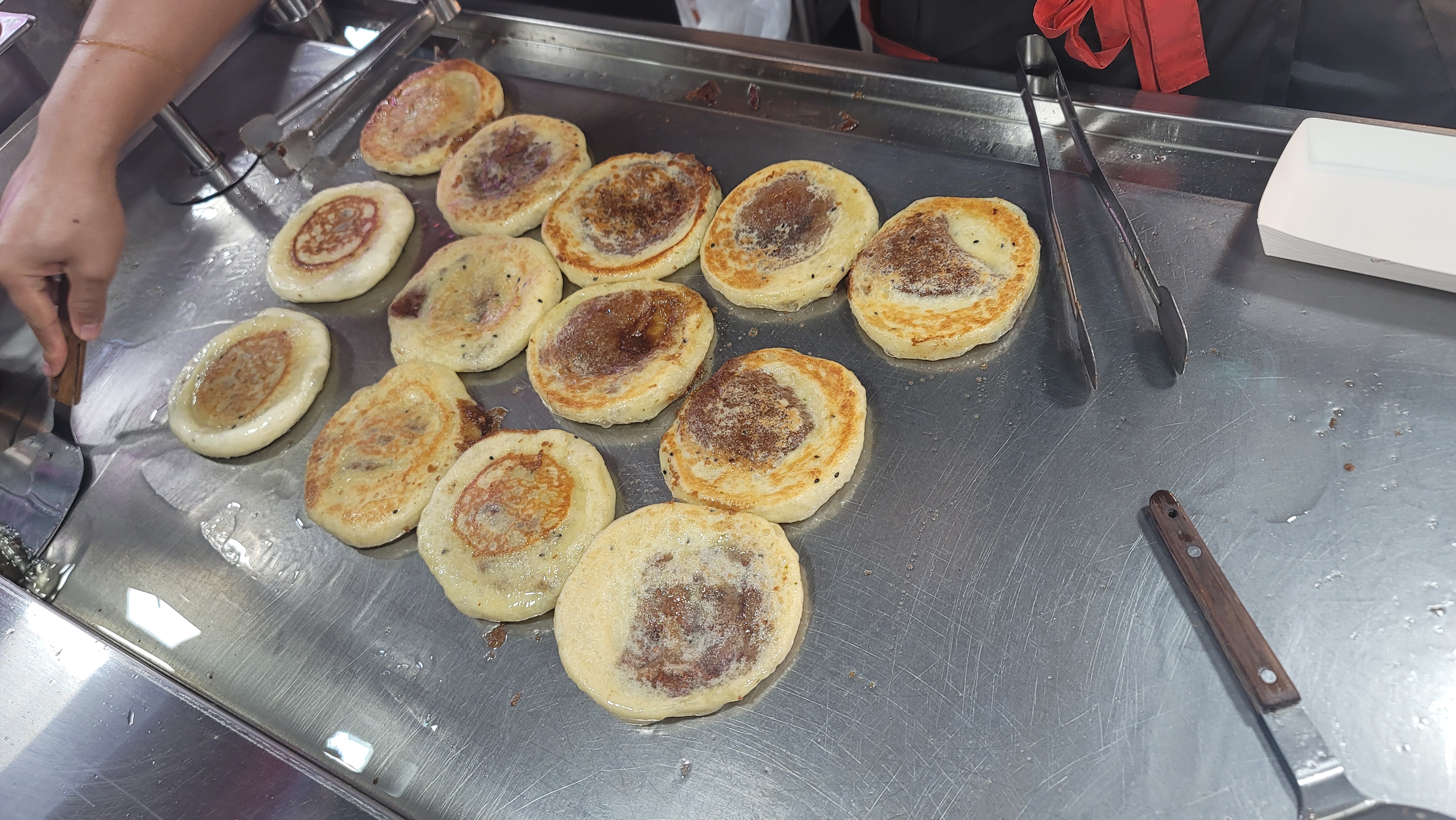 아니 게다가, 요즘은 씨앗호떡이다 피자호떡이다 튜닝된 제품이 많은데 이건 그냥 전통! 그야말로 클래식한 저스트 호떡이요, 이거...구워지는거 보고 안먹고 지나가기가 힘든거죠!! ㅎㅎ 어떻게 저렇게 노릇하게 굽는거죠? 대단!!!