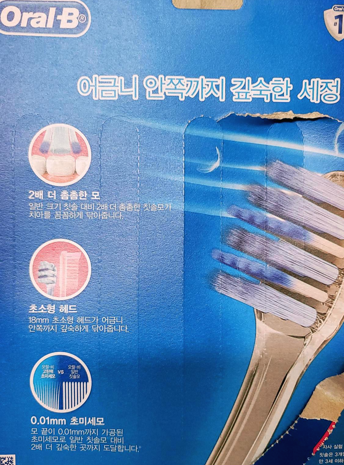 바로 오랄비 칫솔 인데요. 18mm의 초소형 헤드와 초미세모를 자랑하는 칫솔 입니다. 기존에 사용하던 칫솔들은 전부 헤드가 굉장히 큼직하고 길었었는데, 치아에 맞는 칫솔헤드가 다양하게 존재한다는 사실을 지금까지 몰랐었답니다.