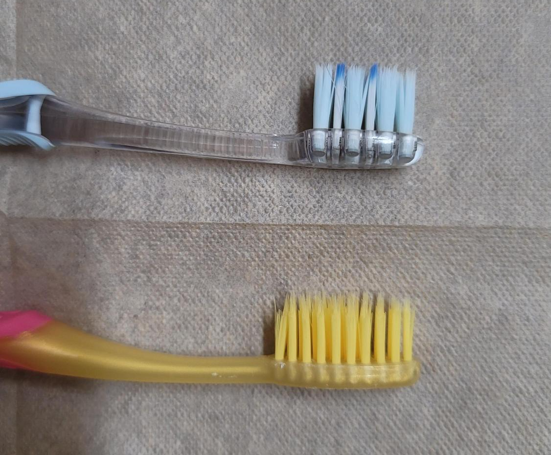 칫솔헤드의 크기에서 상당한 차이가 보이시죠? 아래가 기존에 사용하던 칫솔이고 위는 새로 구입한 오랄비 초소형헤드 칫솔 입니다. 둘다 미세모 라서 부드럽긴 하지만 아무래도 작은헤드가 구석구석 더 잘 닦일 것만 같은 느낌은 있답니다.