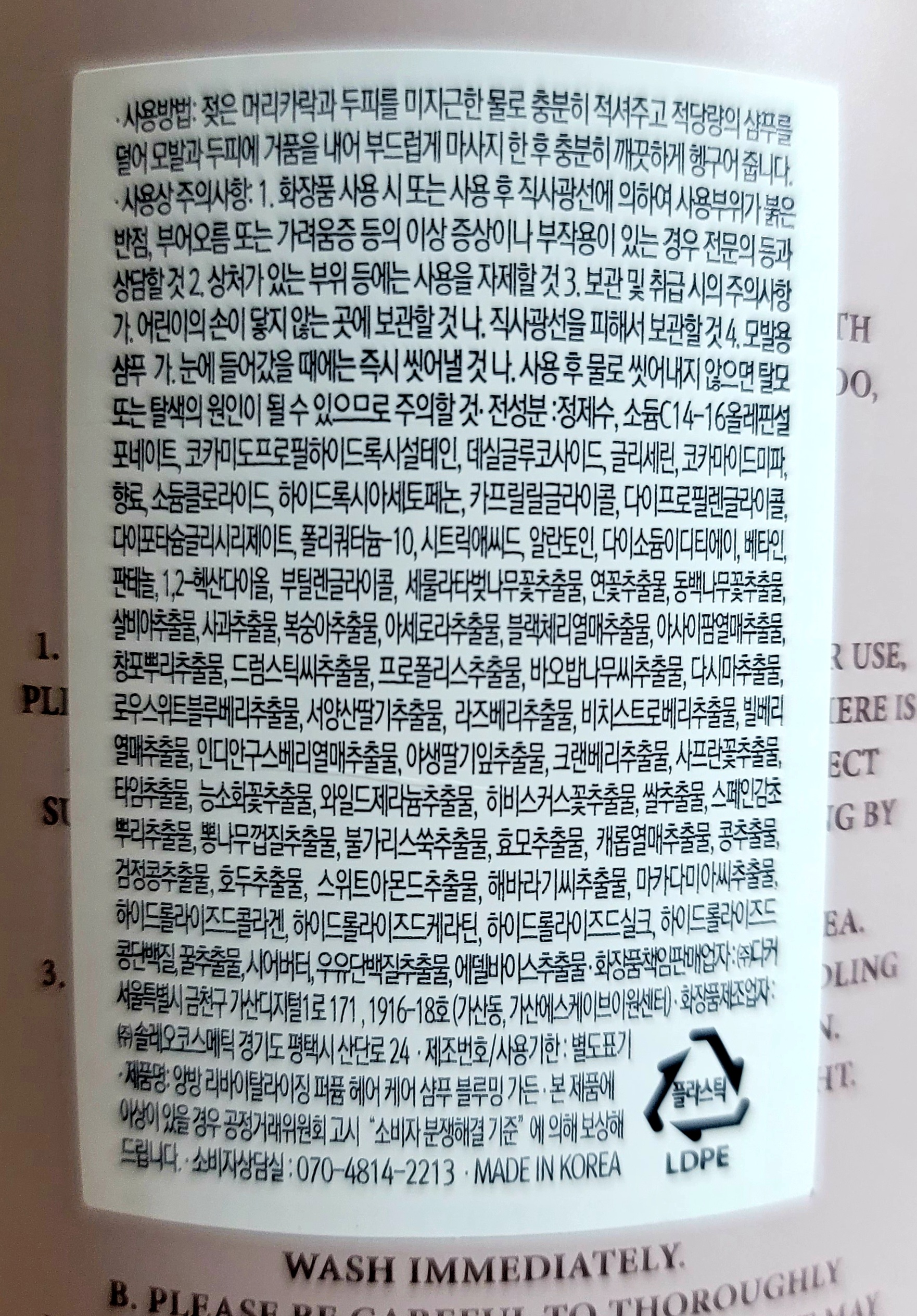 온라인에서만 판매되는 것인지는 모르겠어요. 오프라인 매장에 대한 정보는 없어서... 그래서 더욱 고르기가 힘든 것 같아요. 저는 너무나 궁금해서 받자마자 샴푸를 해보았습니다. 수많은 정보중에 미용실 샴푸다, 승무원 샴푸다 말이 많아서 아주 큰 기대를 갖고 샴푸를 해보았는데 동이 틀때까지 눈이 따가울때까지 도대체 왜 검색을 한것인가 허무할 정도로 향을 느낄 수 없었습니다. 그렇다고 무향은 아니지만, 퍼품샴푸라는 이름에 걸맞지 않게 향기가 딱히 향수처럼 퍼지지는 않았어요~ 이 제품만 그런것인지는 모르겠는데, 혹시 다른향의 샴푸는 더 진한 향이 풍기는걸까요? 향기 고민하시는분들, 고민하지 마시고 아무향이나 제일 유명한거 사서 일단 써보시면 될거같아요 ㅋㅋ 대체 무슨 향수향이 난다는건지ㅋㅋ 은은하게 은근슬쩍(?) 언틋언틋 향기가 나긴 합니다. 제가 사용한 블루밍가든만 그런것일수도 있습니다 ㅎ