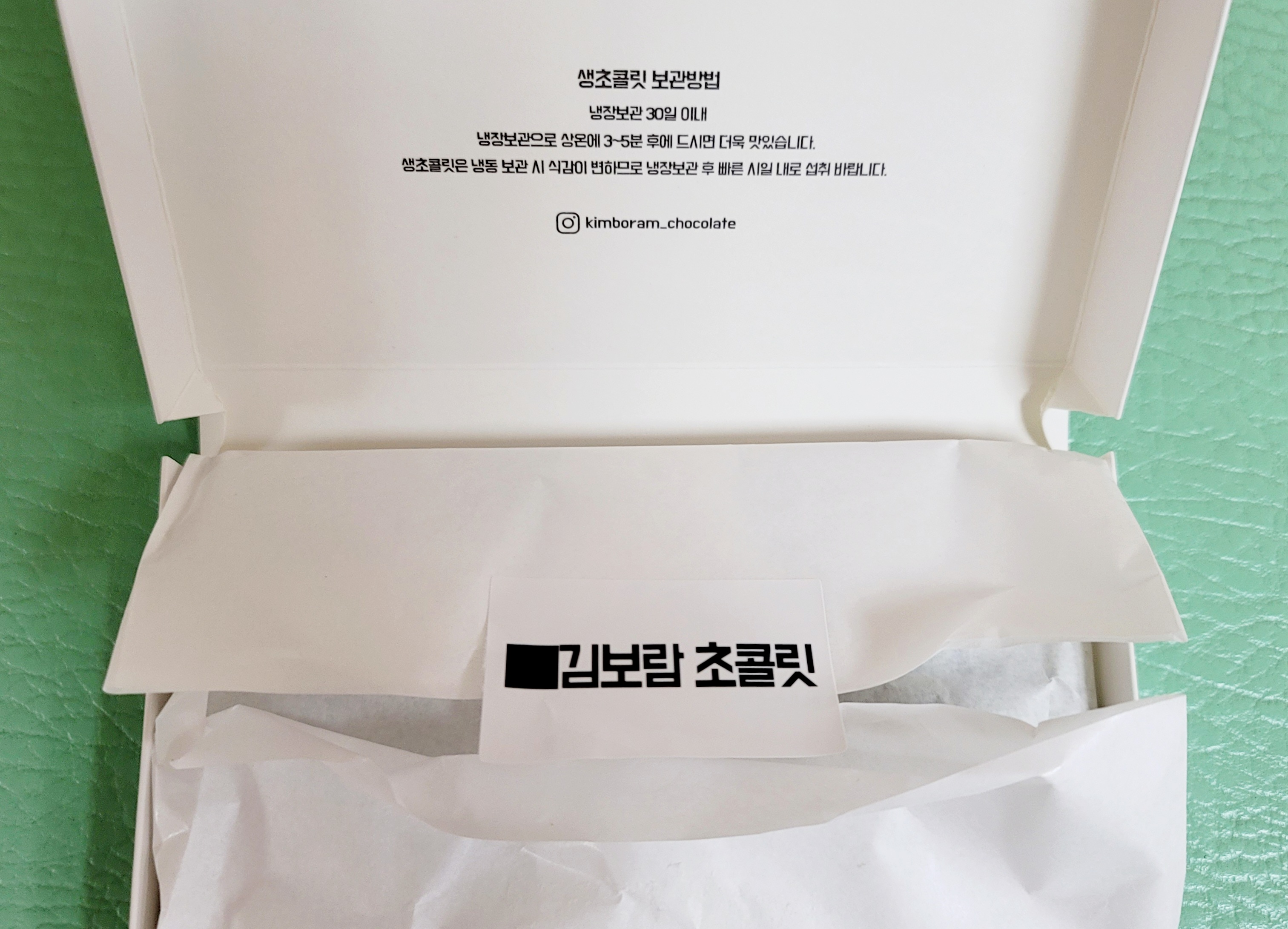 보통 초콜릿은 녹을까봐 냉동실에 보관하는데, 이건 생초콜릿이라서 냉동보관시 식감이 변한다고 되어있어요. 냉장보관은 30일 이내로 하고 빠른시일안에 섭취하라고 되어있습니다. 꼼꼼한 포장이 마음에 드는 부분입니다~